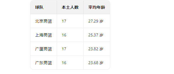 特此声明:数据分析依据为官方发布内容。为更客观呈现各队年龄分布情况,外援年龄不计入统计范围。