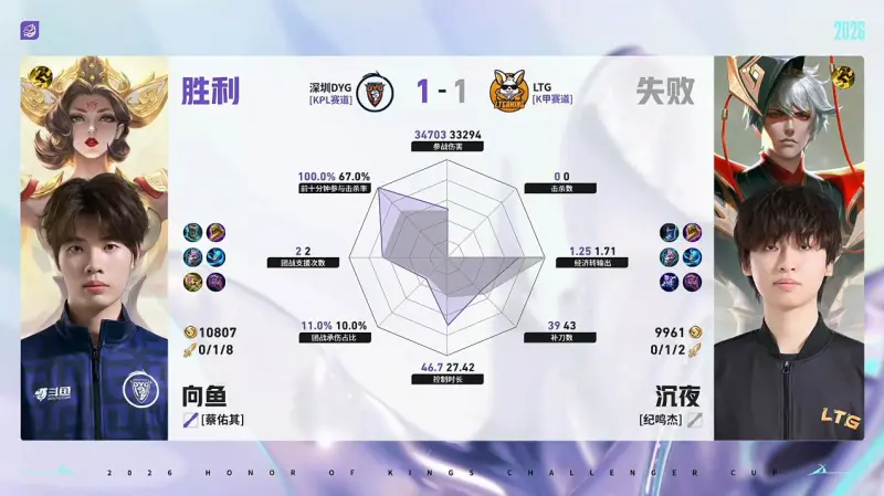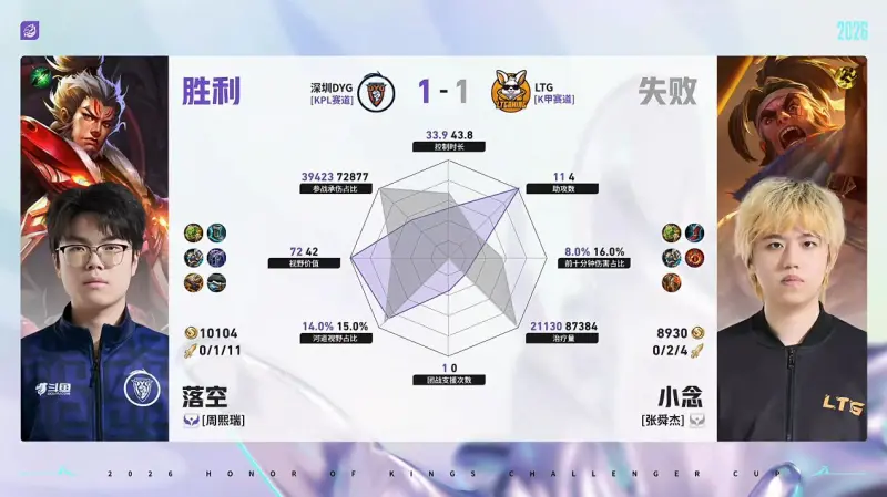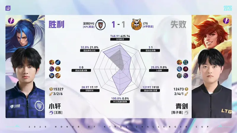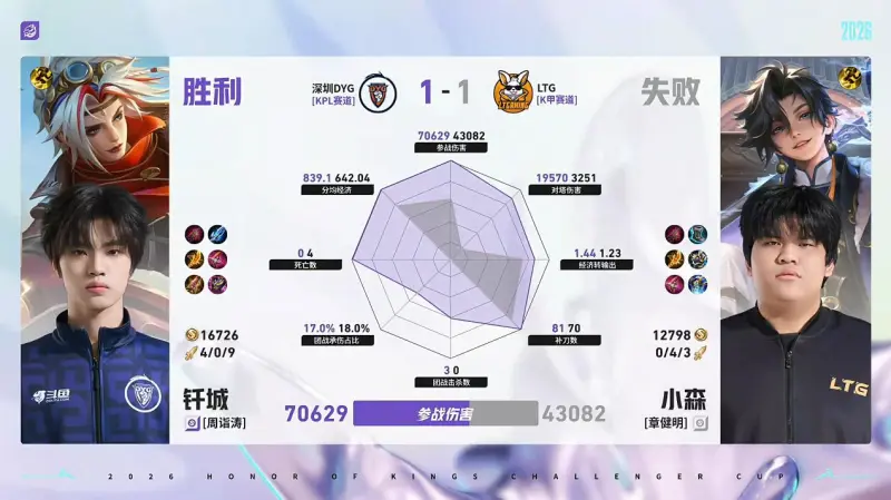 虎扑04月27日讯 DYG/LTG第2局数据对比:钎城戈娅全包围小森孙权。